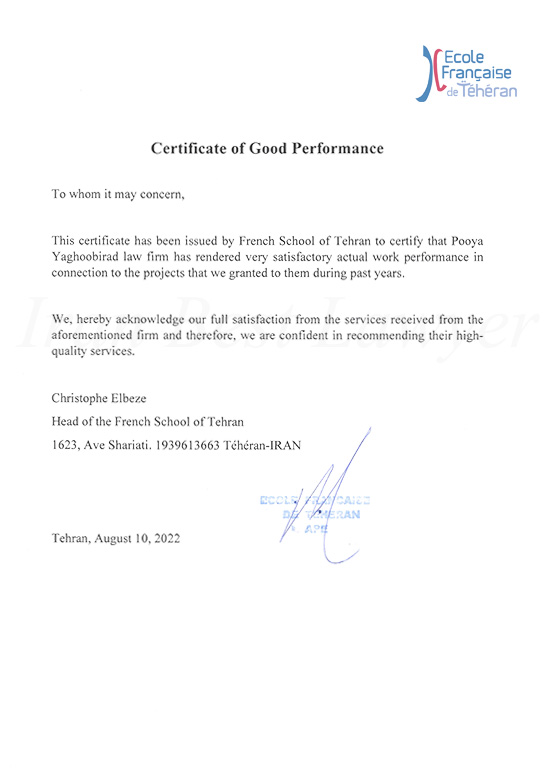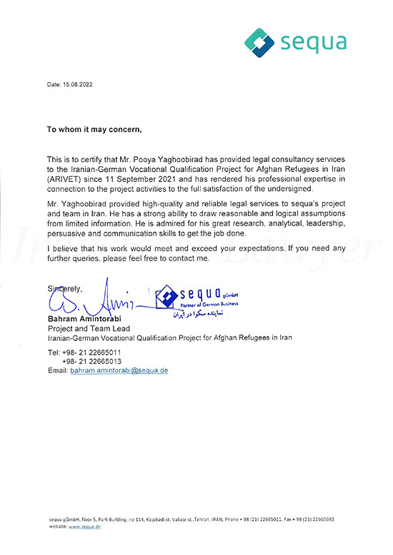 In case you require legal assistance in Iran, please feel free to contact us!